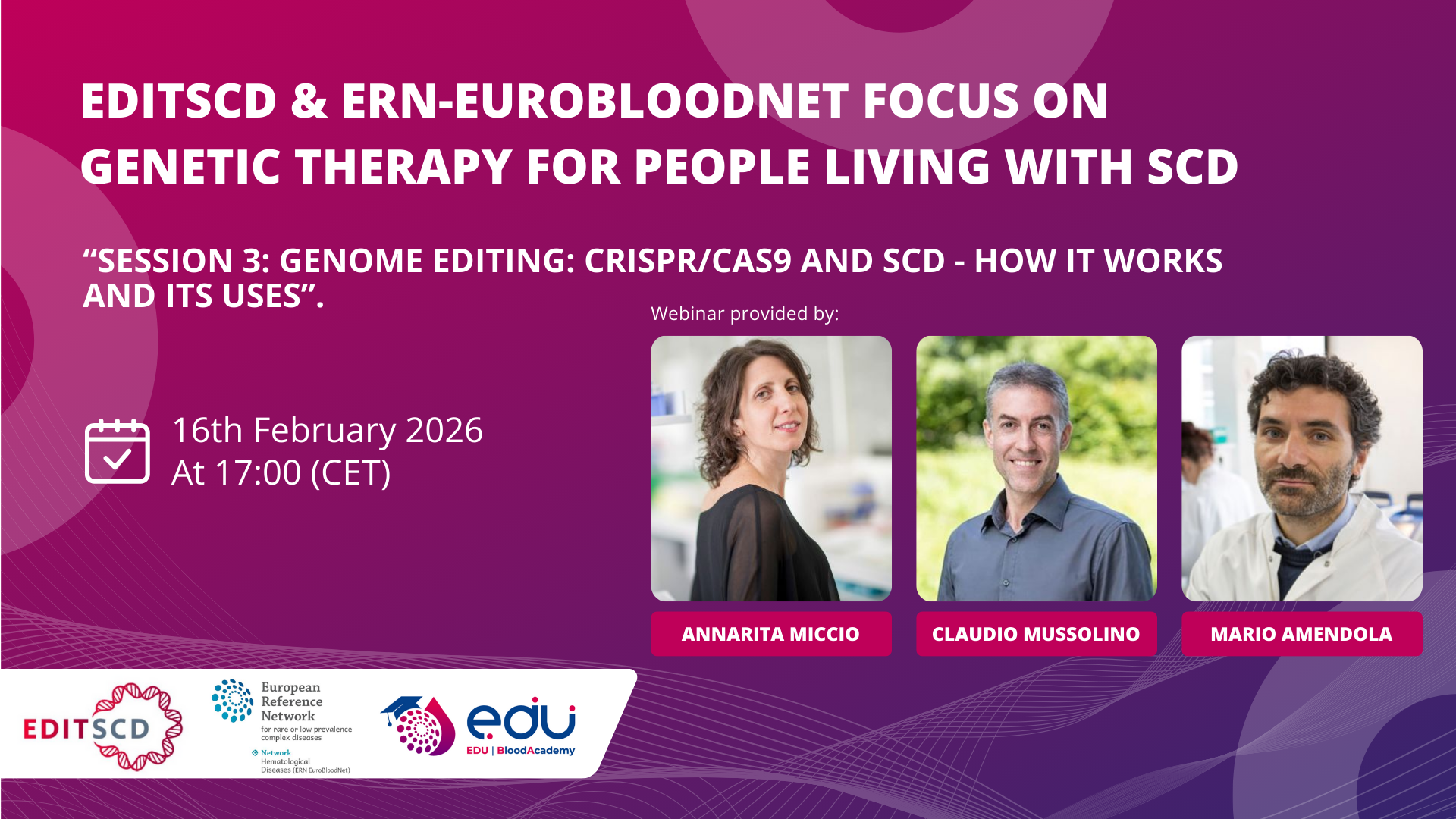 ERN-EuroBloodNet and the EDITSCD Consortium is launching the third webinar of the series of webinars regarding gene therapy and genome editing approaches for SCD.